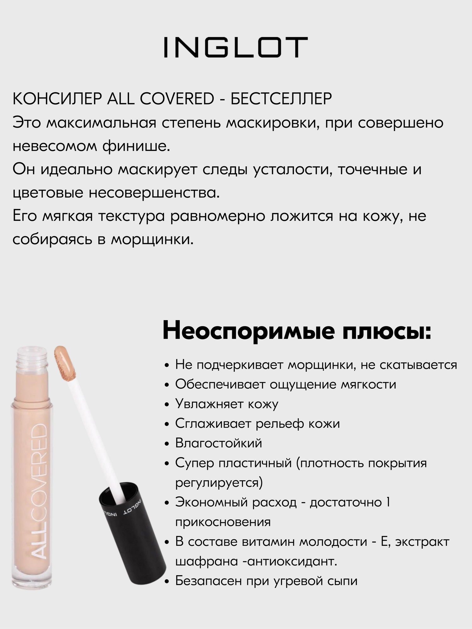 Консилер INGLOT плотный с мягкой ухаживающей формулой под глаза и для лица ALL COVERED CONCEALER N107