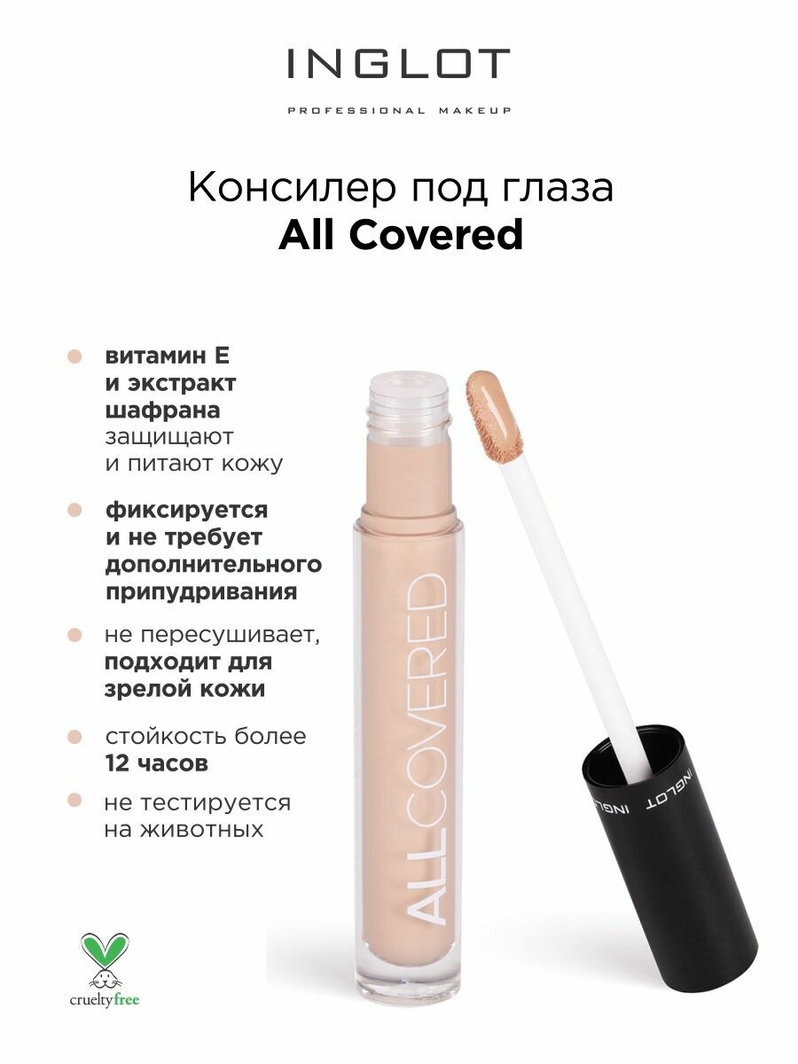 Консилер INGLOT плотный с мягкой ухаживающей формулой под глаза и для лица ALL COVERED CONCEALER N106