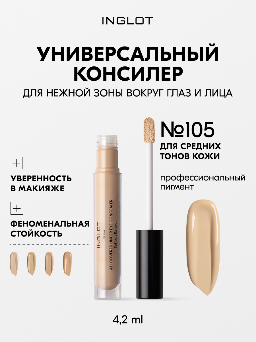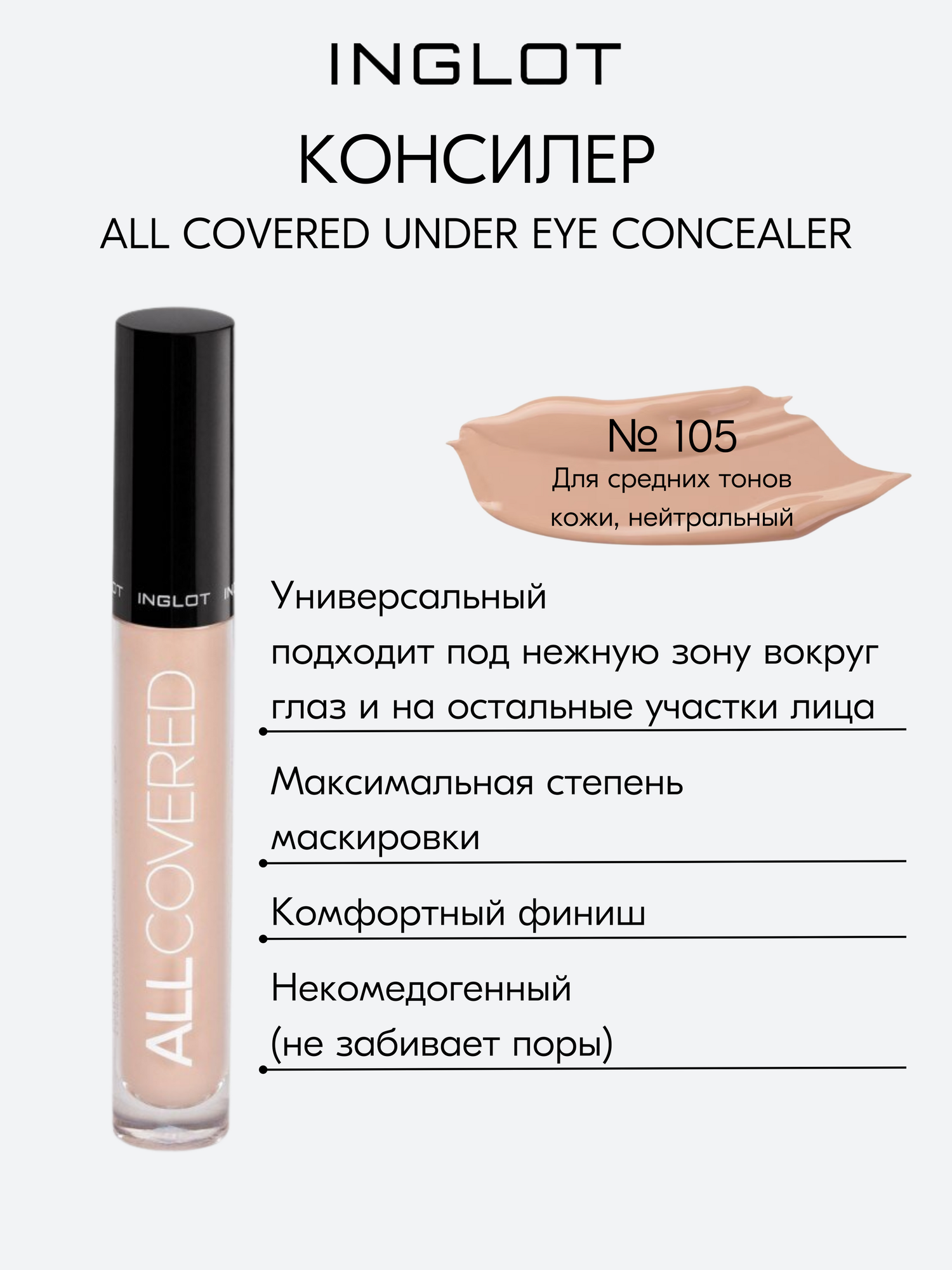 Консилер INGLOT плотный с мягкой ухаживающей формулой под глаза и для лица ALL COVERED CONCEALER N105