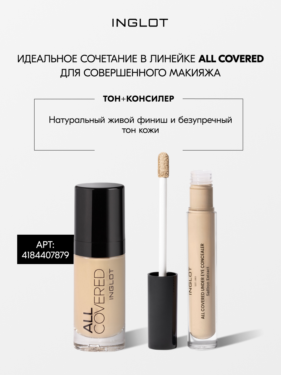 СохранитьКонсилер INGLOT плотный с мягкой ухаживающей формулой под глаза и для лица ALL COVERED CONCEALER N107 интересное: