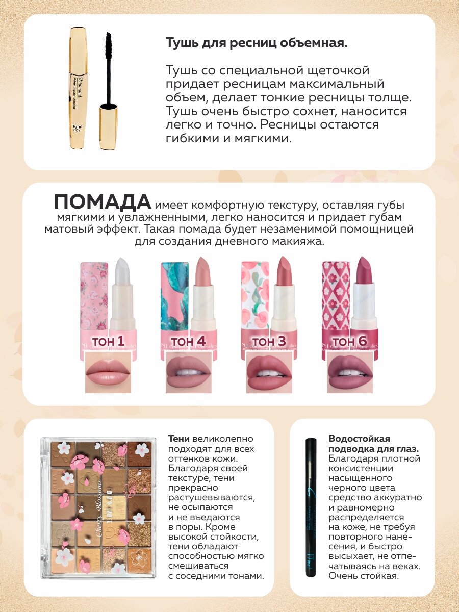 Ниже Вы можете прочитать отзывы на Подарочный набор косметики для макияжа, ознакомится с подробными характеристиками, посмотреть интересные обзоры и фотографии на Подарочный набор косметики для макияжа.