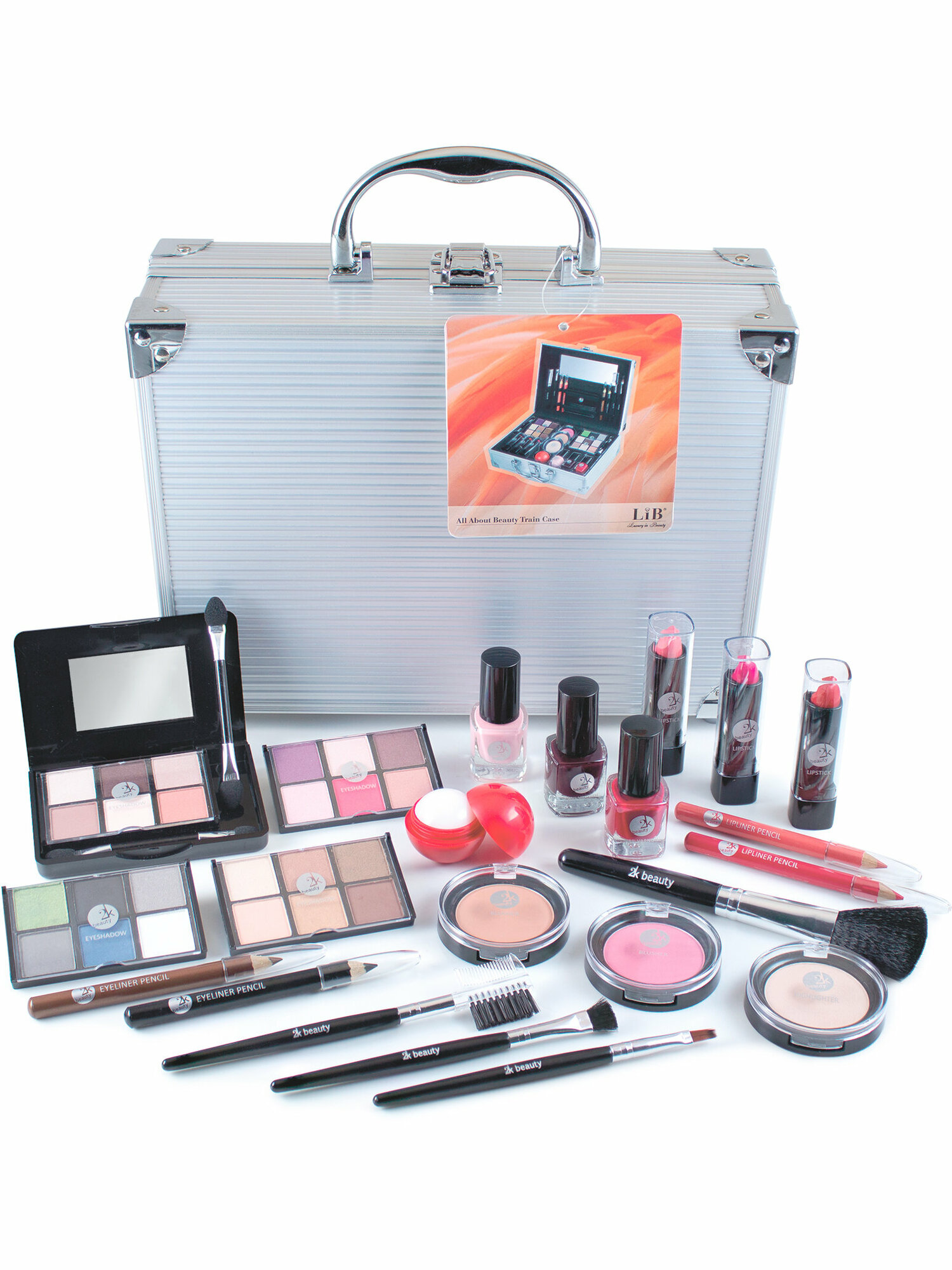 | Состав набора | блеск для губ / зеркало / карандаш для глаз / карандаш для губ / кисть / лак для ногтей / помада для губ / пудра для лица / румяна для лица / тени для век |