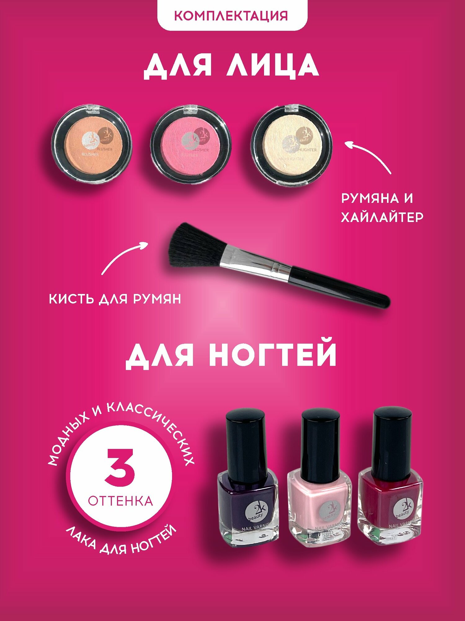 2K Beauty Набор детской декоративной косметики для макияжа в подарочном чемодане, тени для век, помада, лак для ногтей интересное: