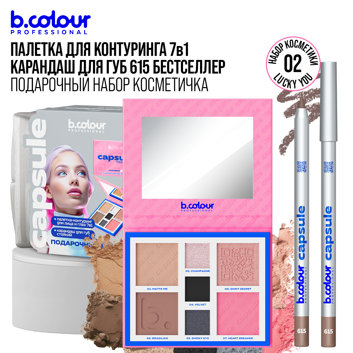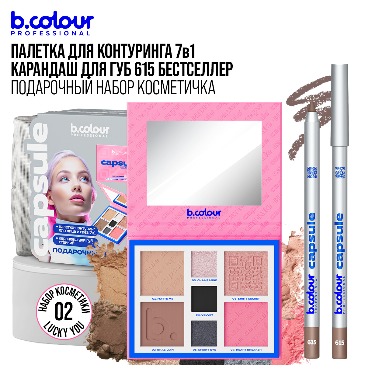 B.COLOUR PROFESSIONAL Хайлайтер для лица, набор косметики CAPSULE, 02 LUCKY YOU