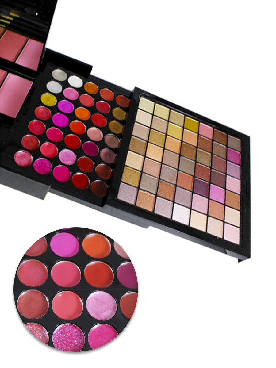 | В наборе | тени для век 98 оттенков, помада для губ 70 оттенков, консилеры, тени для бровей 6 оттенков, румяна 3 оттенка, кисти |