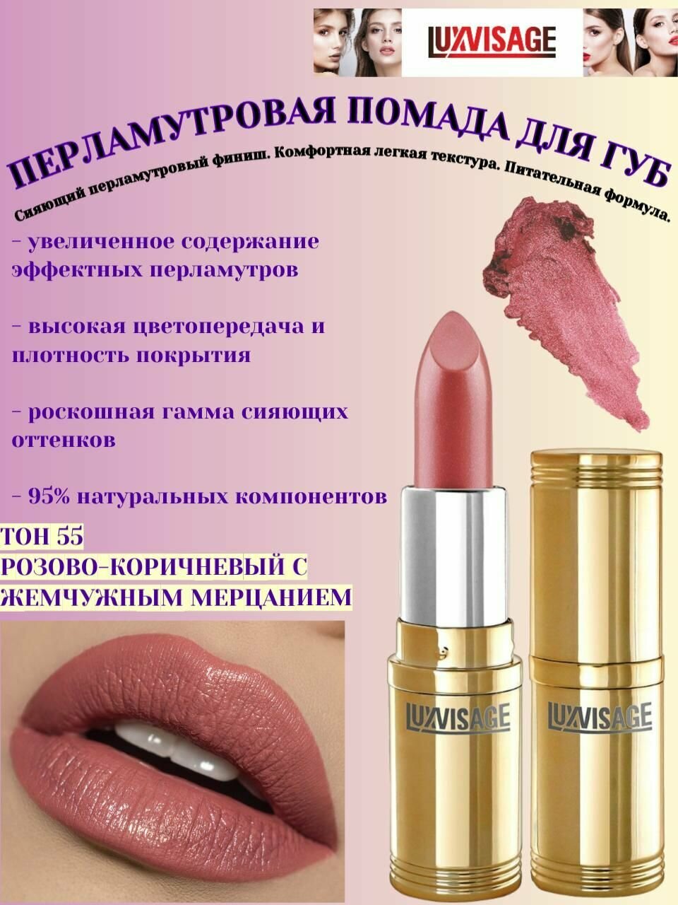 LUXVISAGE Губная помада перламутровая тон 55 / макияж
