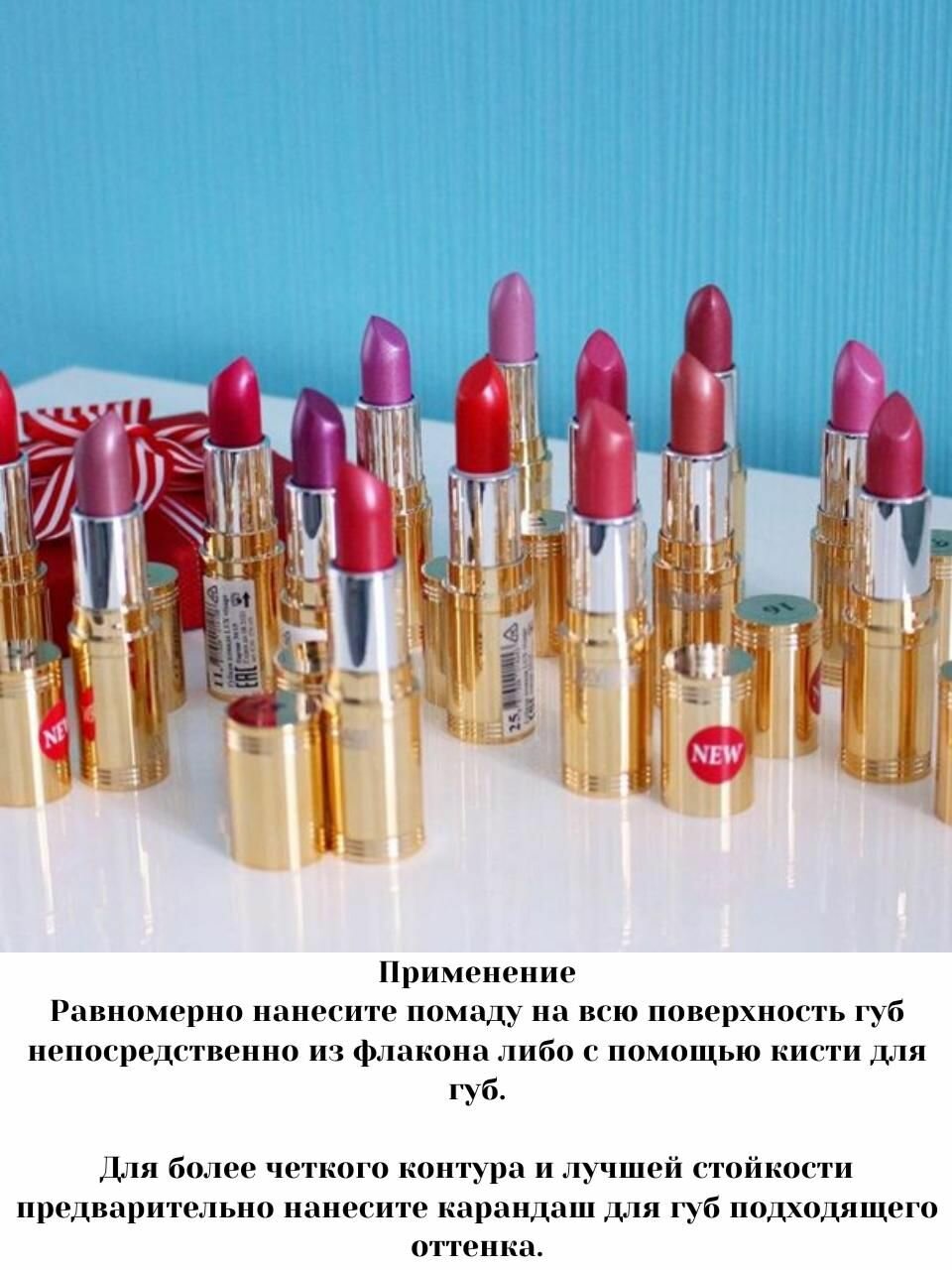 | Способ применения | нанесите помаду самостоятельно или с контурным карандашом. Для наилучшего результата используйте кисточку для губ |