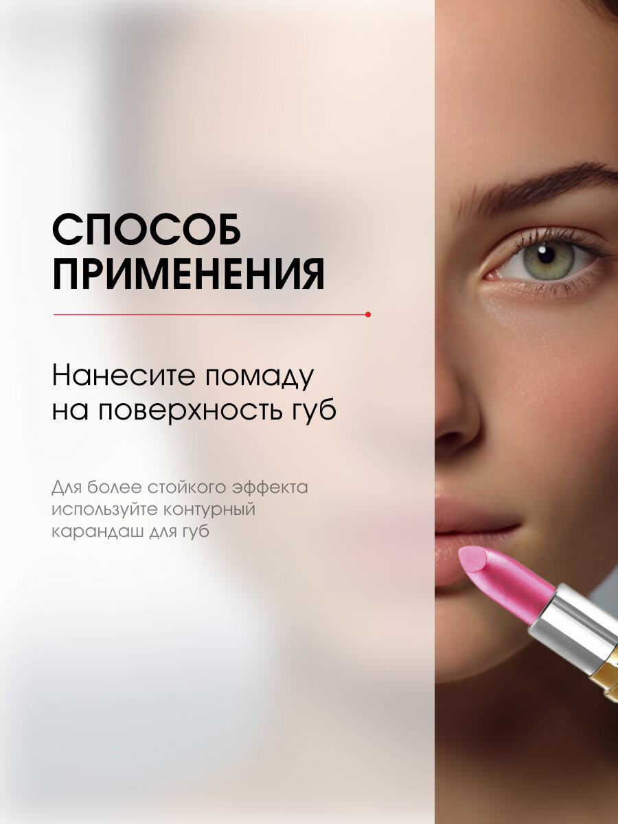| Способ применения | нанесите помаду самостоятельно или с контурным карандашом. Для наилучшего результата используйте кисточку для губ |