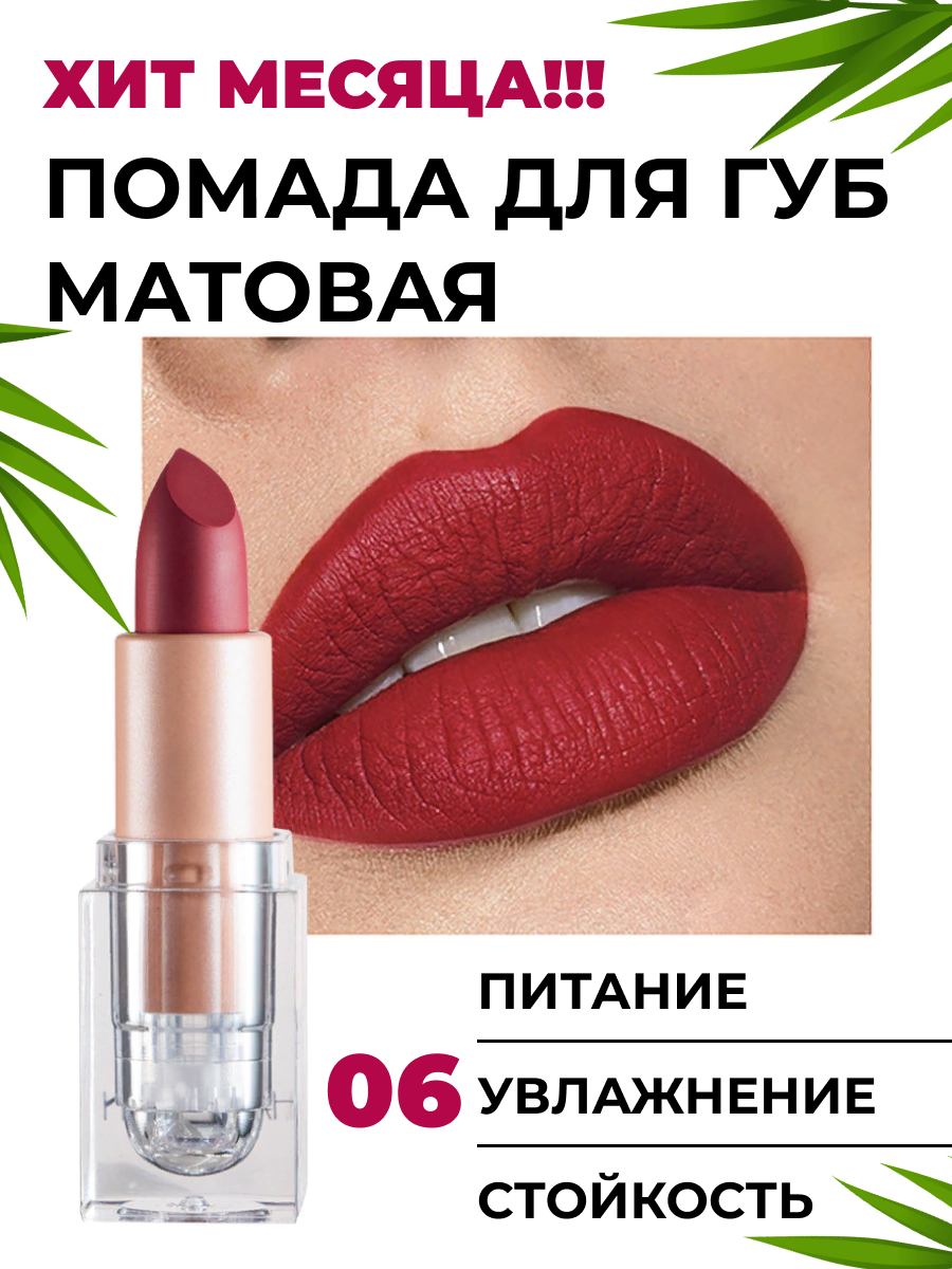 Матовая стойкая помада для губ, wine-red