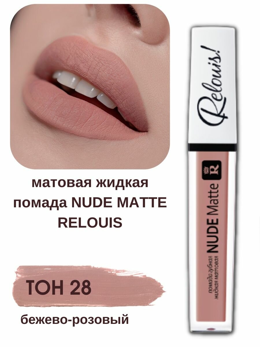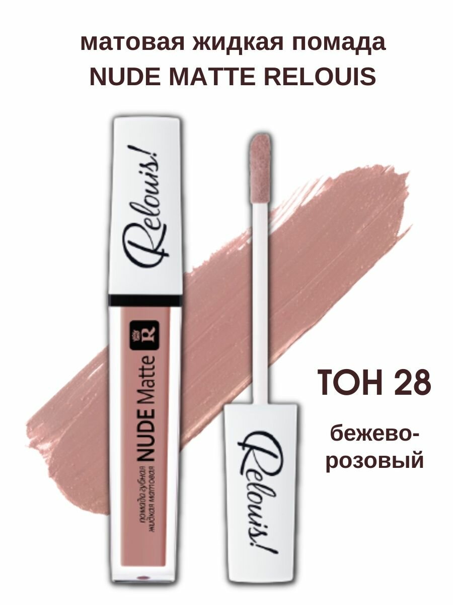 Помада для губ RELOUIS NUDE MATTE жидкая матовая, тон 28 бежево-розовый