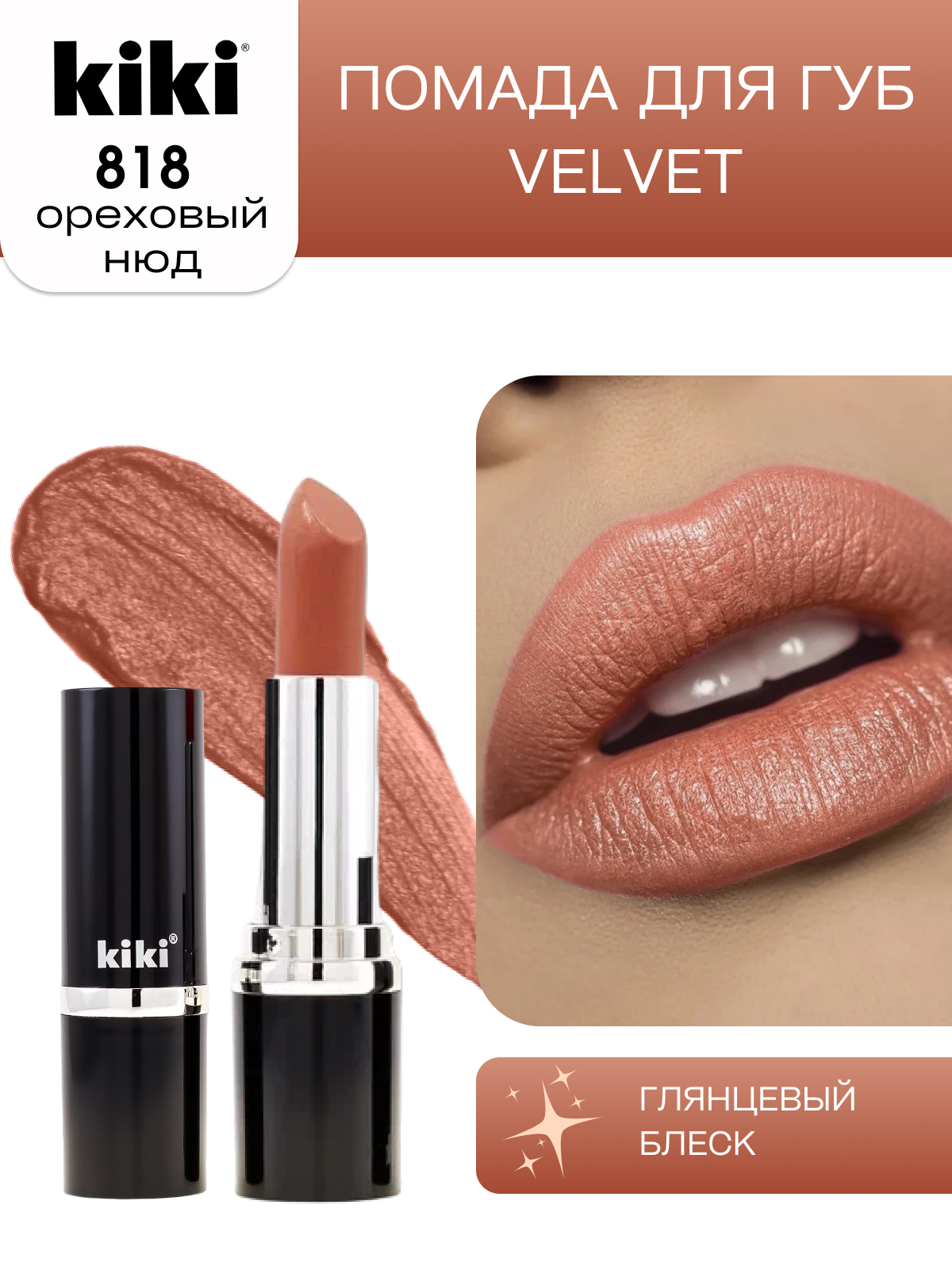 Губная помада kiki VELVET тон 818 ореховый нюд стойкая увлажняющая кремовая текстура стик, кики