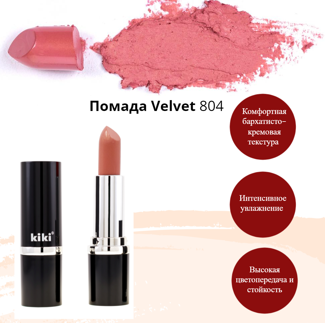 Губная помада kiki VELVET тон 804 пыльная роза стойкая увлажняющая кремовая текстура стик, кики