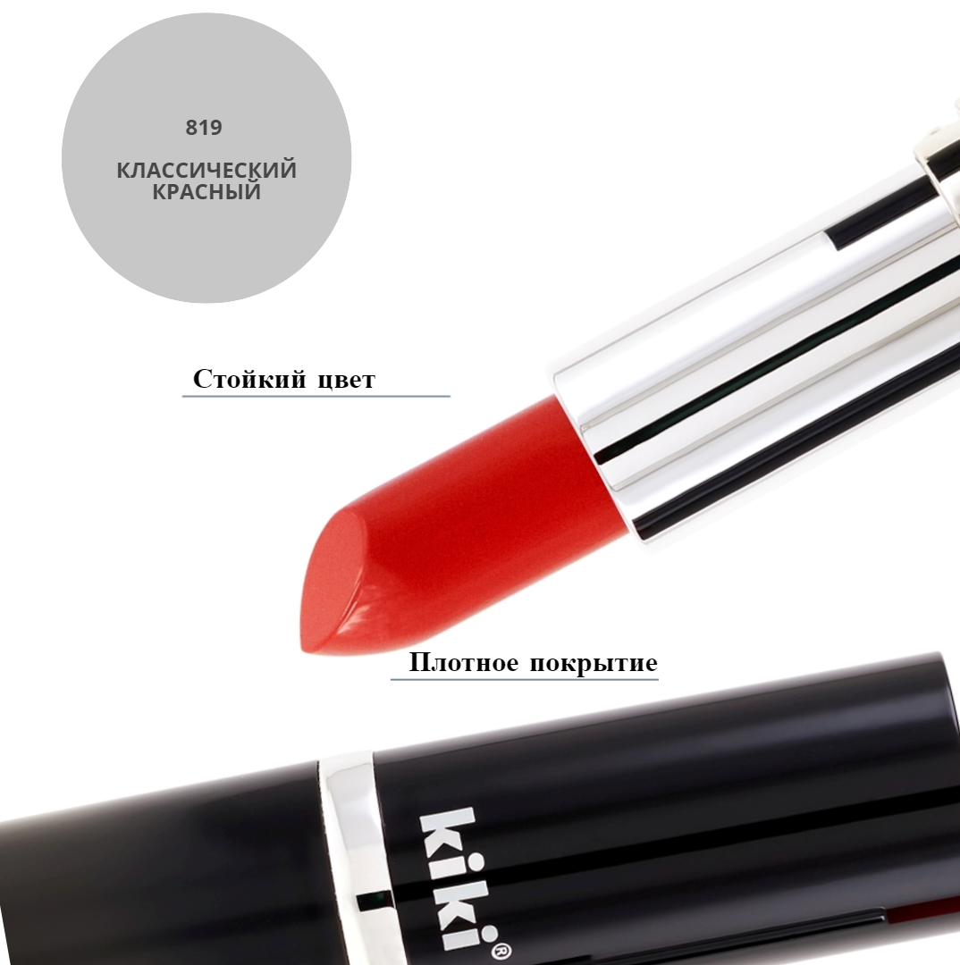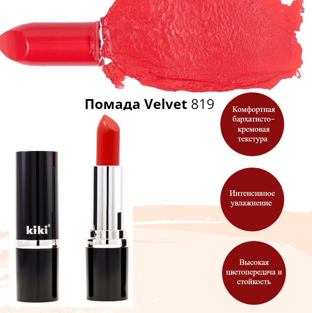 Губная помада kiki VELVET тон 819 классический красный стойкая увлажняющая кремовая текстура стик, кики