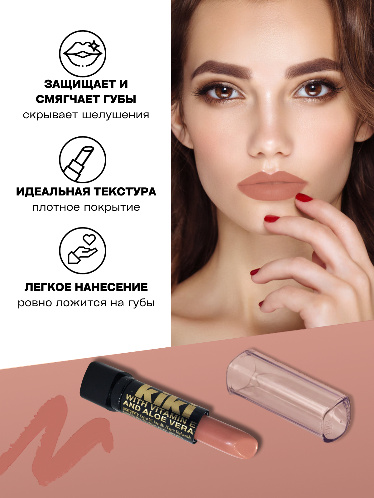 Kiki Помада для губ с алоэ и витамином E, оттенок 034
