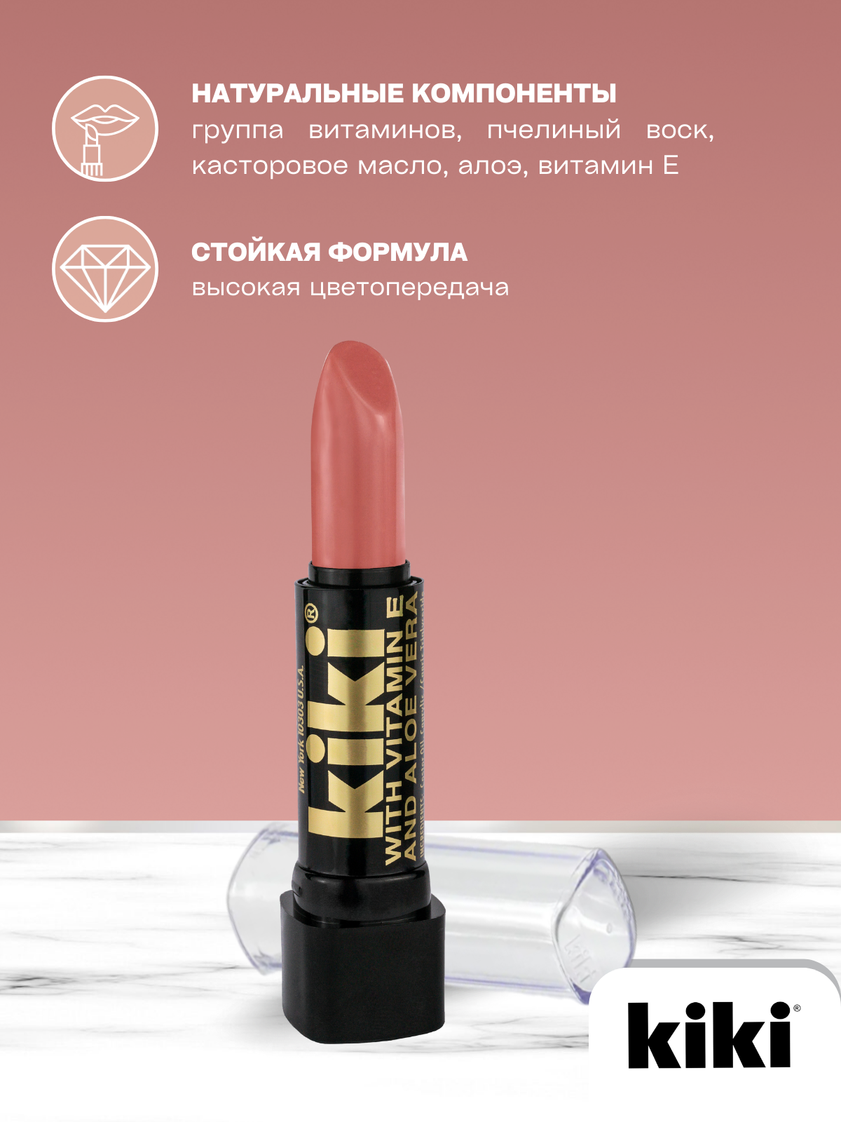 Помада для губ kiki с aloe & vit E тон 142 розово-персиковый стойкая увлажняющая глянцевая, кики