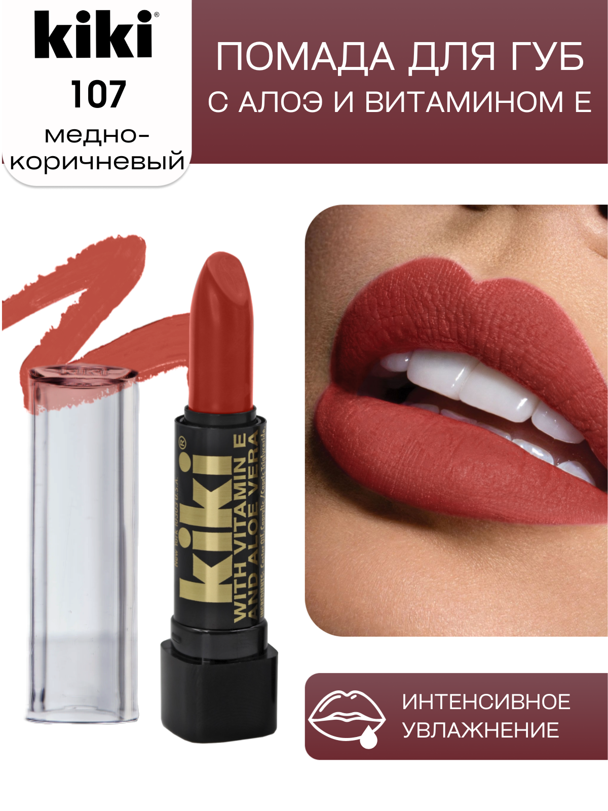 Купить Помада для губ KIKI TIFFANY оттенок 107 c алоэ и витамином Е, медно-коричневый, с глянцевым блеском