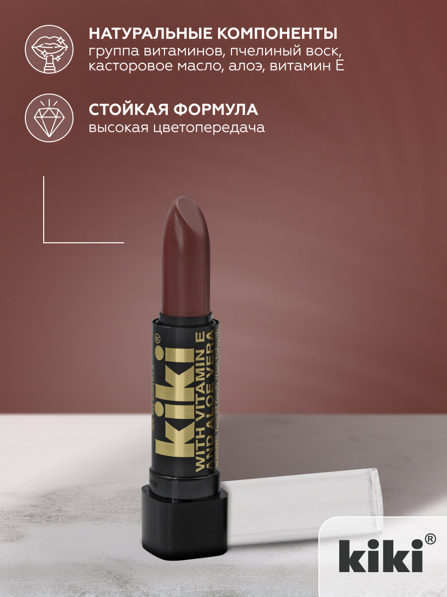 Помада для губ kiki с aloe & vit E тон 133 каштановый стойкая увлажняющая глянцевая, кики