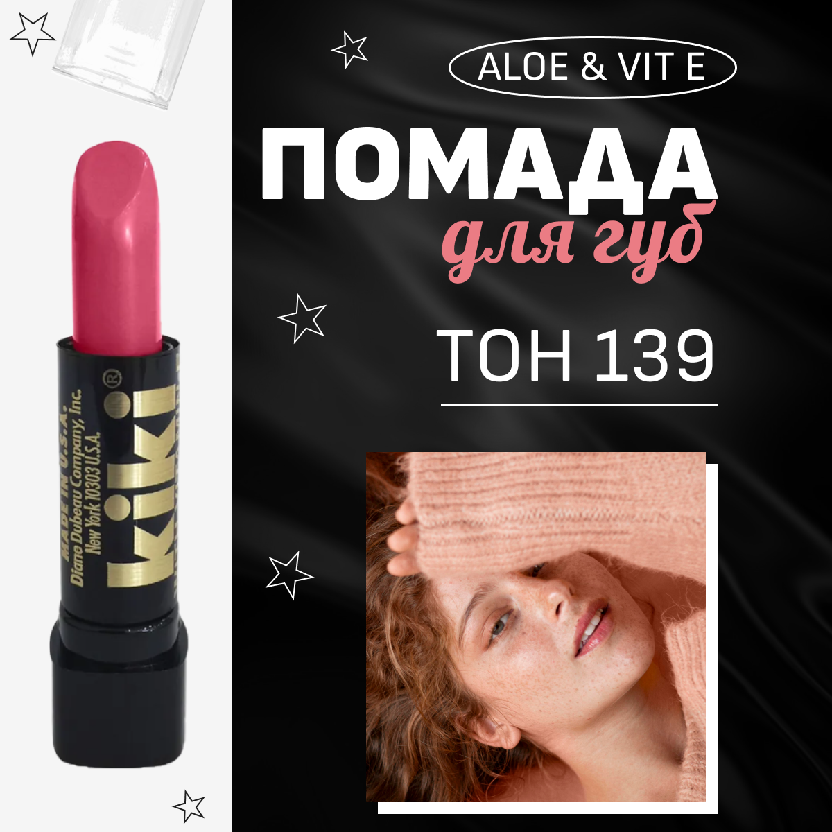 Помада для губ kiki с aloe & vit E тон 137 пыльно-розовый стойкая увлажняющая глянцевая, кики