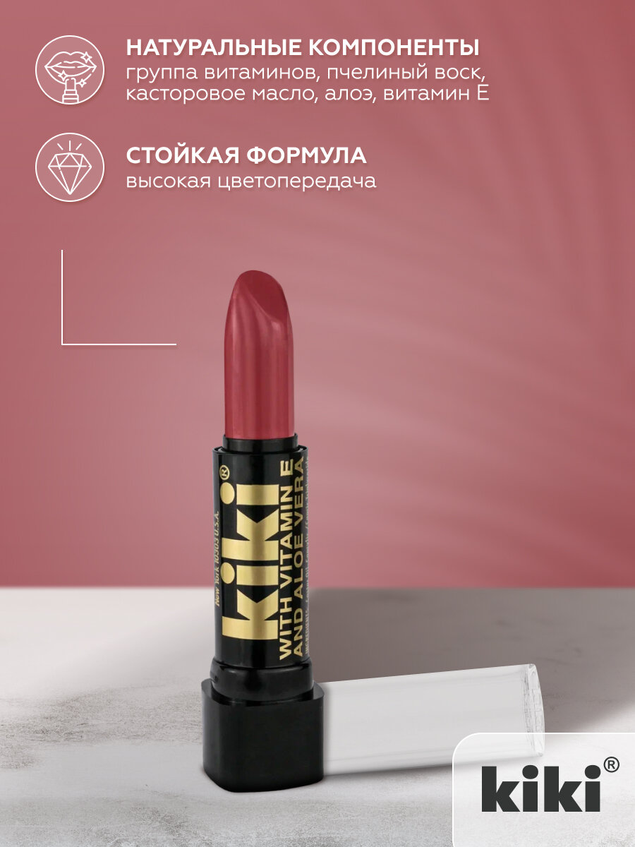 Помада для губ kiki с aloe & vit E тон 131 нежно-малиновый стойкая увлажняющая глянцевая, кики
