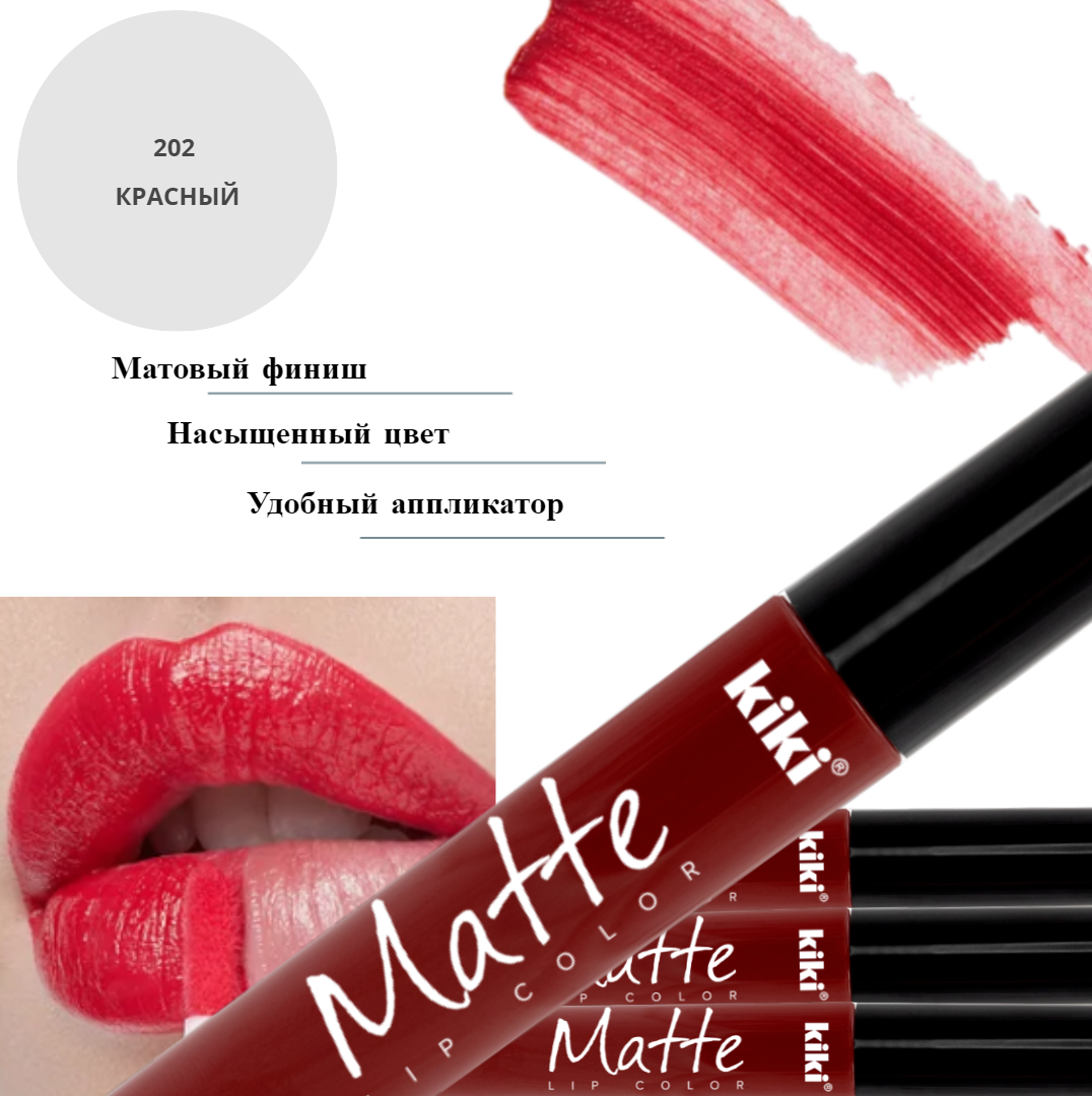 Жидкая помада для губ kiki Matte lip color тон 202 красный стойкая увлажняющая матовая с маслом жожоба и витамином Е , кики