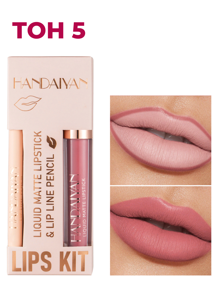 Помада и карандаш 2 в 1 - матовый, сатиновый, стойкий - набор для губ, 10