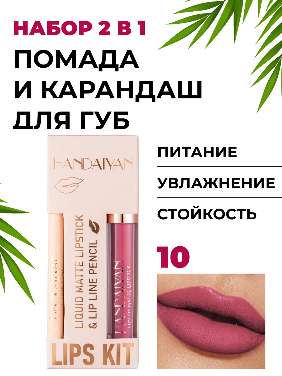 Купить Помада и карандаш 2 в 1 - матовый, сатиновый, стойкий - набор для губ, 10