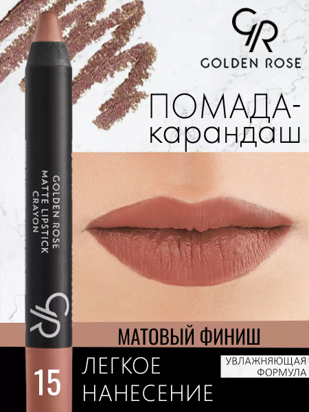Купить Помада-карандаш для губ «Golden rose» Matte lipstick crayon №15