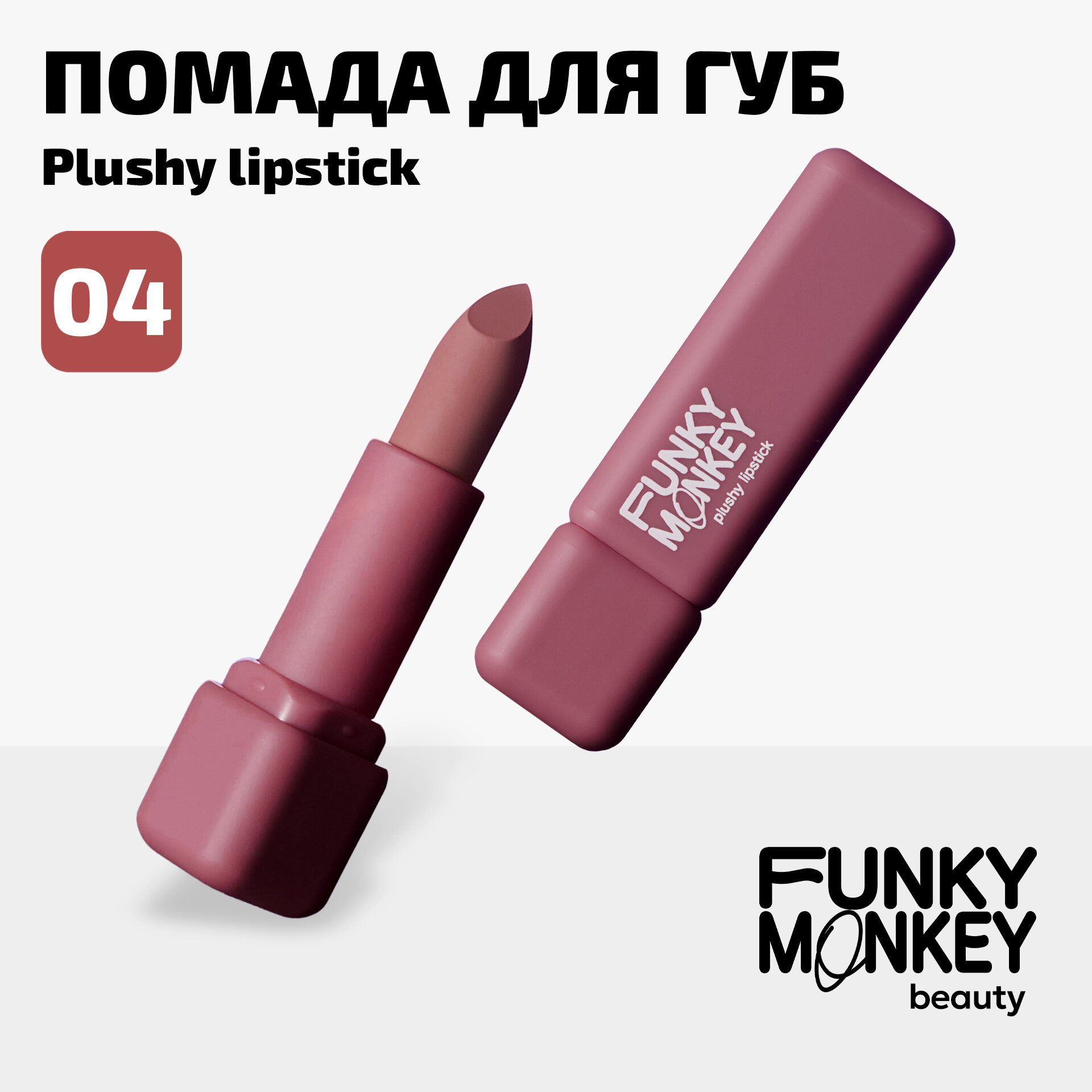 Funky Monkey Помада для губ плюшевая Plushy lipstick тон 04 холодный нюд