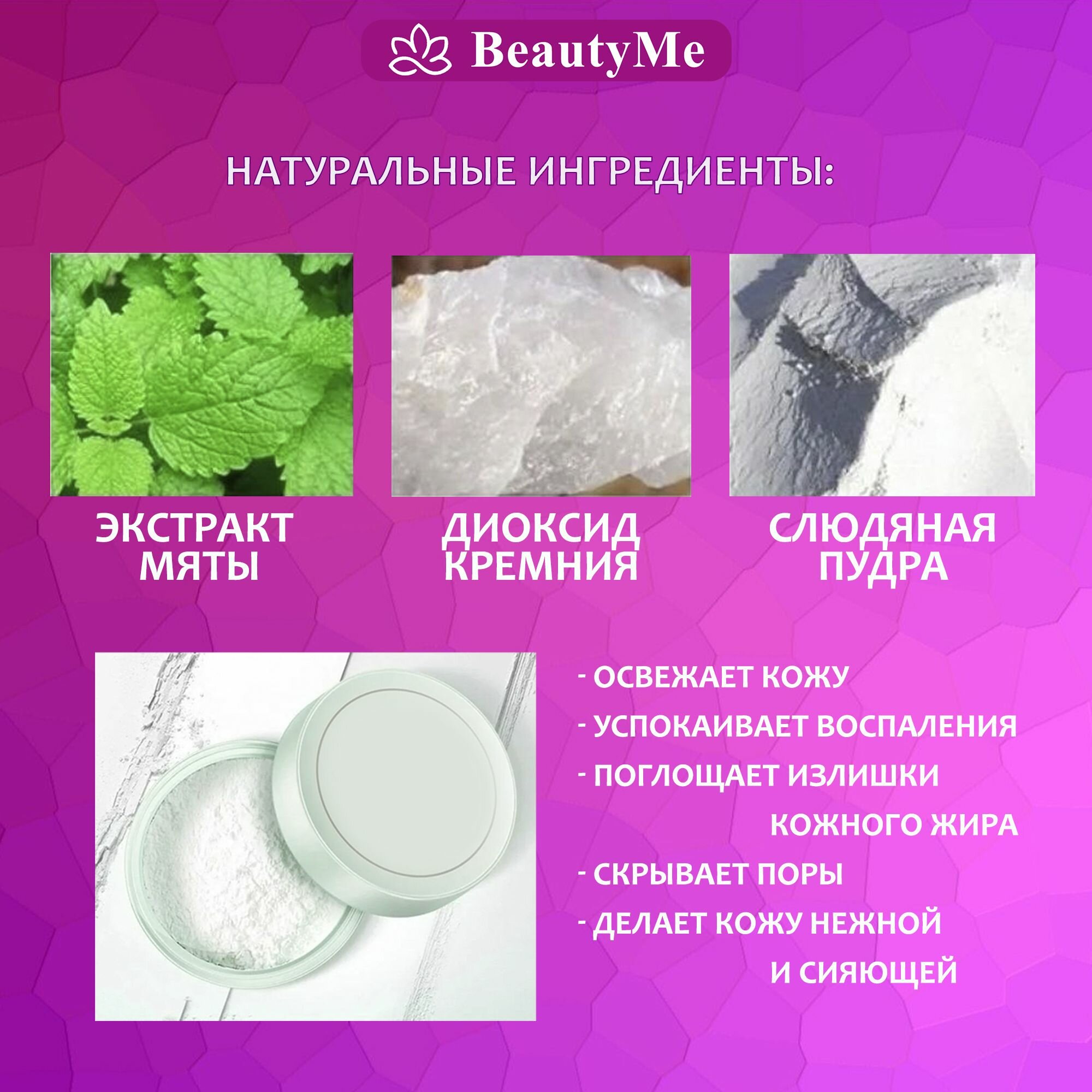 | Состав | тальк, модифицированный кукурузный крахмал, диоксид кремния, диоксид титана, экстракт мяты |