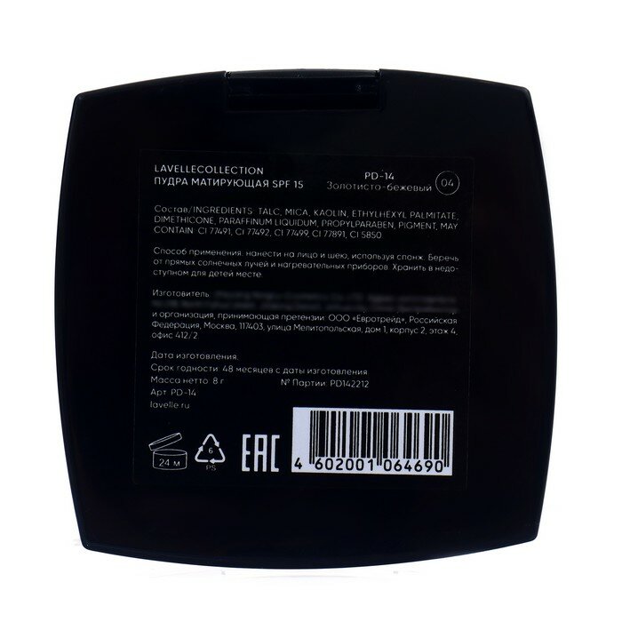 Купить Пудра компактная матирующая SPF-15 Powder LavelleCollection тон 04 золотисто-бежевый