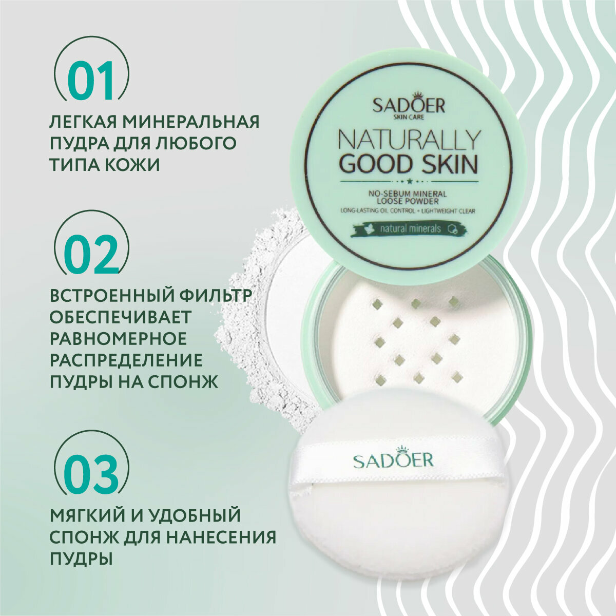 Минеральная пудра для лица матирующая SADOER / Фиксатор пудра минеральная рассыпчатая прозрачная / Пудра белая минеральная косметика для макияжа интересное: