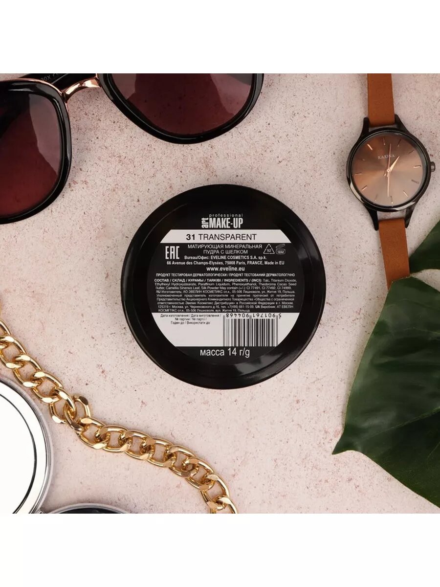 Минеральная матирующая пудра Eveline Anti-Shine Complex с шелком, тон 31 transparent