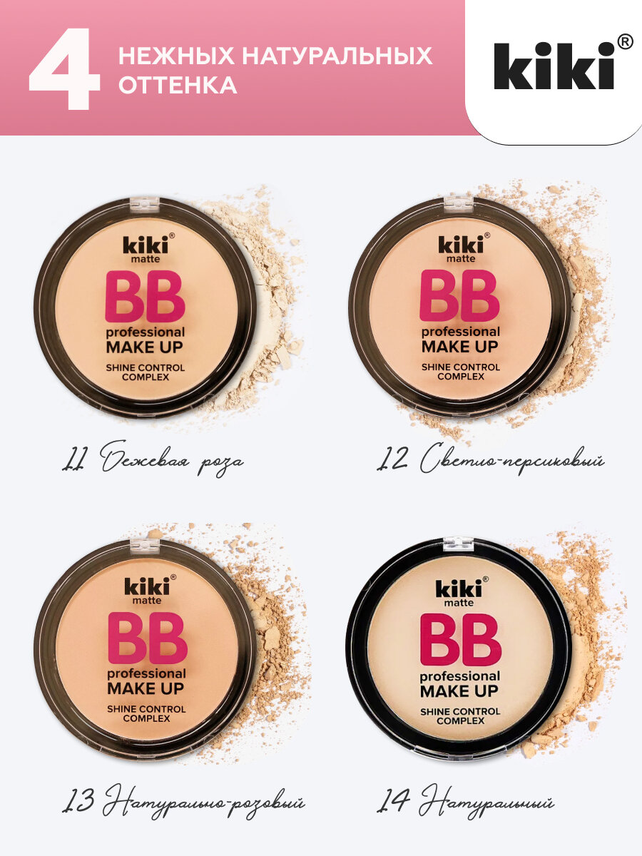 Пудра для лица kiki BB MAKEUP тон 13 натурально-розовый, компактная, матирующая