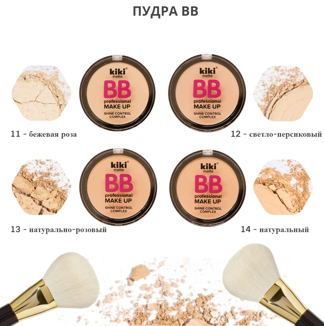 Пудра для лица kiki BB MAKEUP тон 14 натуральный, компактная, матирующая