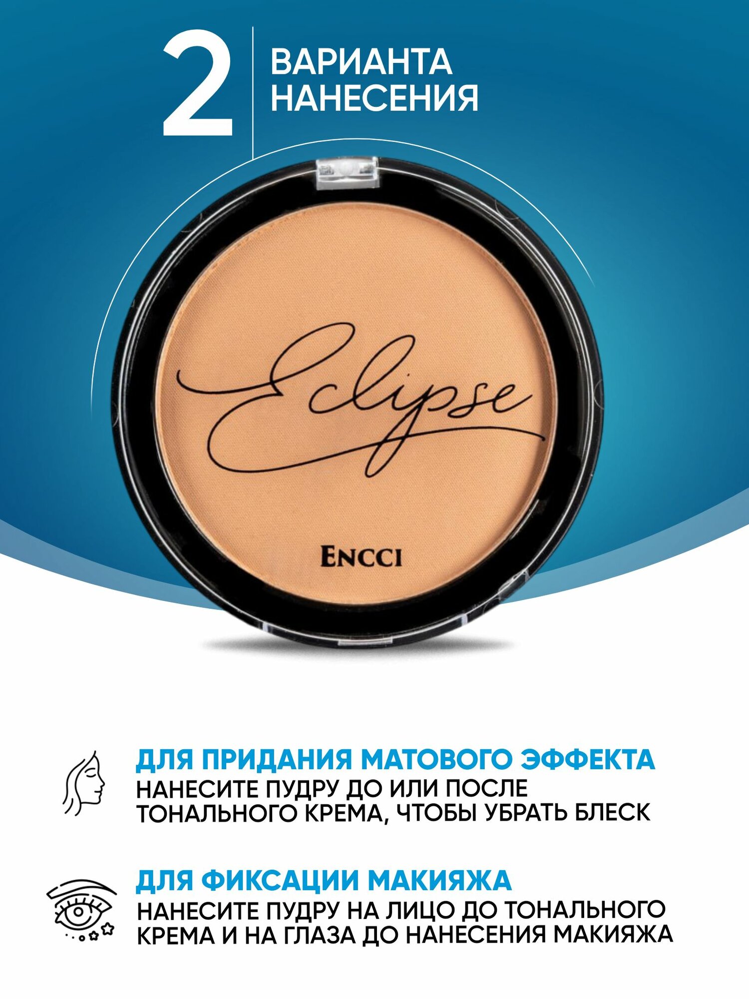 ENCCI Eclipse Компактная матирующая пудра для лица со спонжем, 02