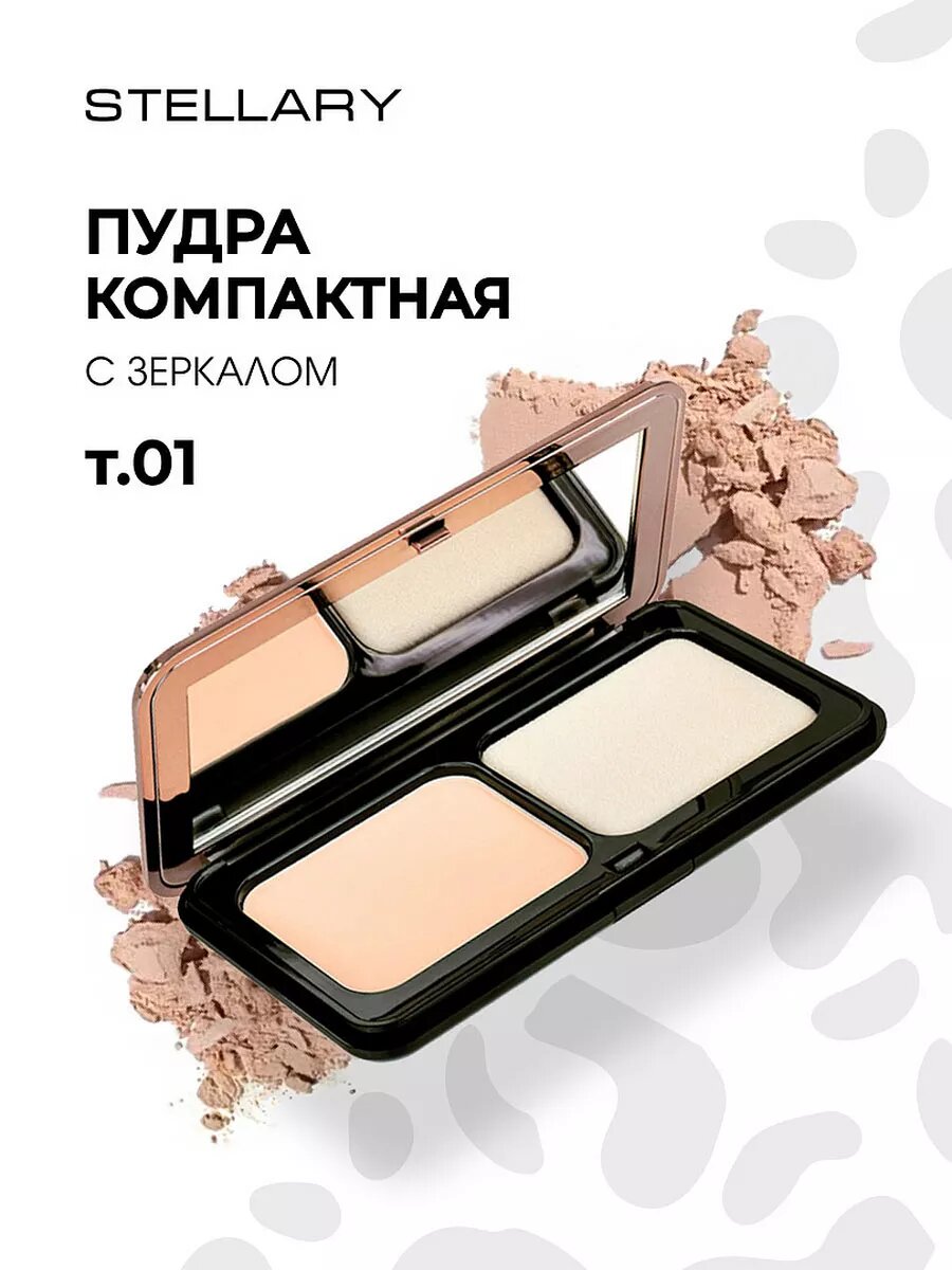 Купить Пудра для лица Stellary компактная с зеркалом, тон 01 светлый беж