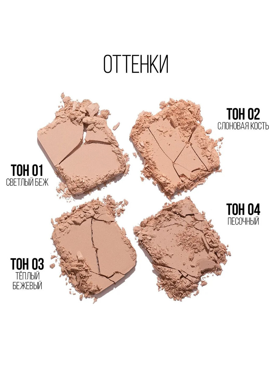 | Цвет товара | 01 светлый беж, 02 слоновая кость, 03 теплый бежевый, 04 песочный |