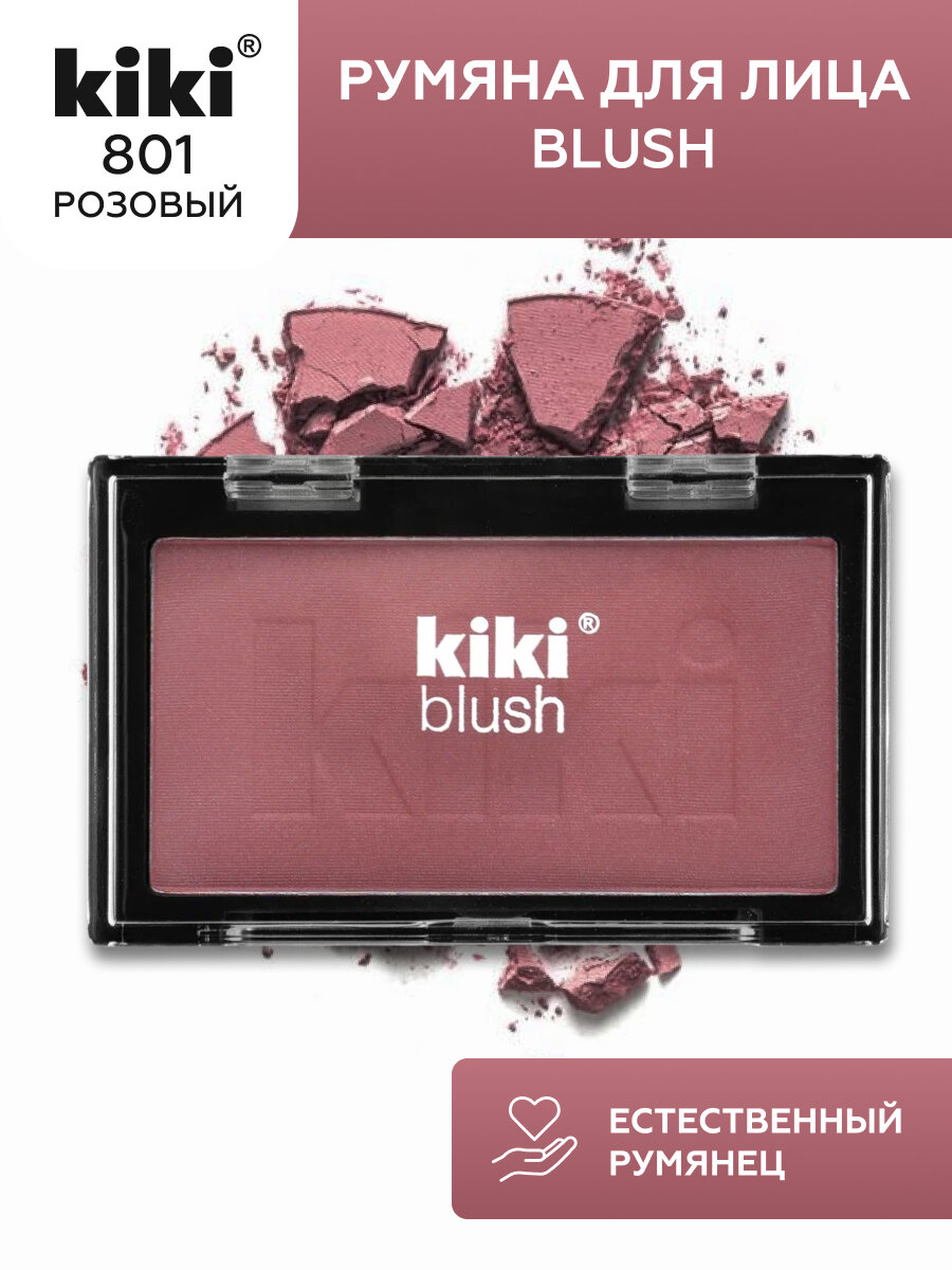 Румяна для лица kiki BLUSH тон 801 розовый компактные матовые пудровые шелковистая структура, кики