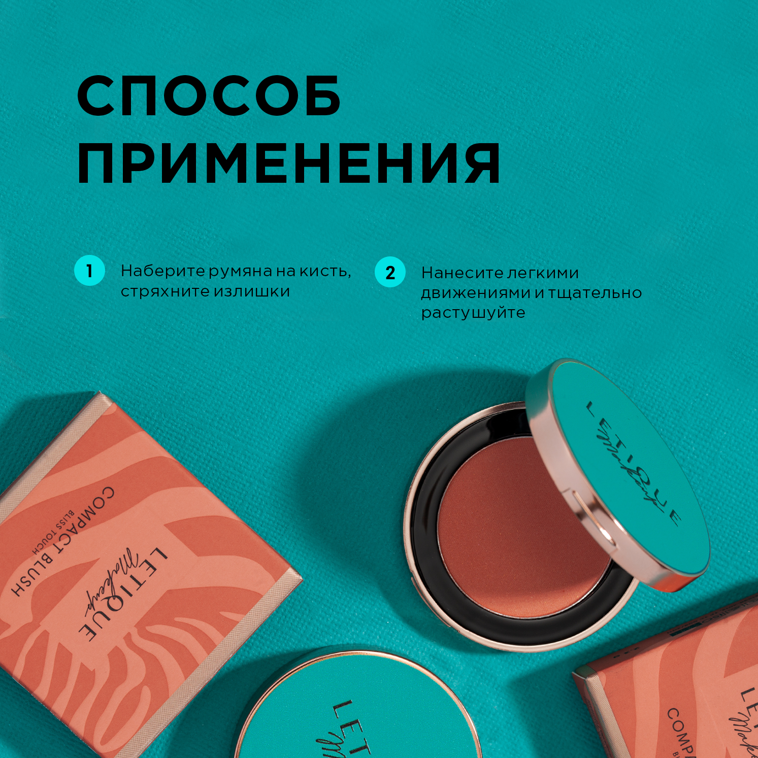 | Способ применения | Наберите румяна на кисть, стряхните излишки. Нанесите легкими движениями и тщательно растушуйте. |