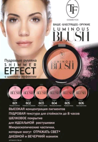 Румяна TF Cosmetics пудровые, тон 602, "Luminous Blush" клубника со сливками с шиммером