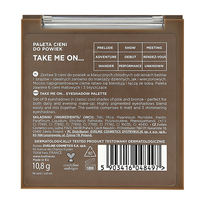 Палетка теней для век EVELINE LOOK UP 9 оттенков, тон take me on