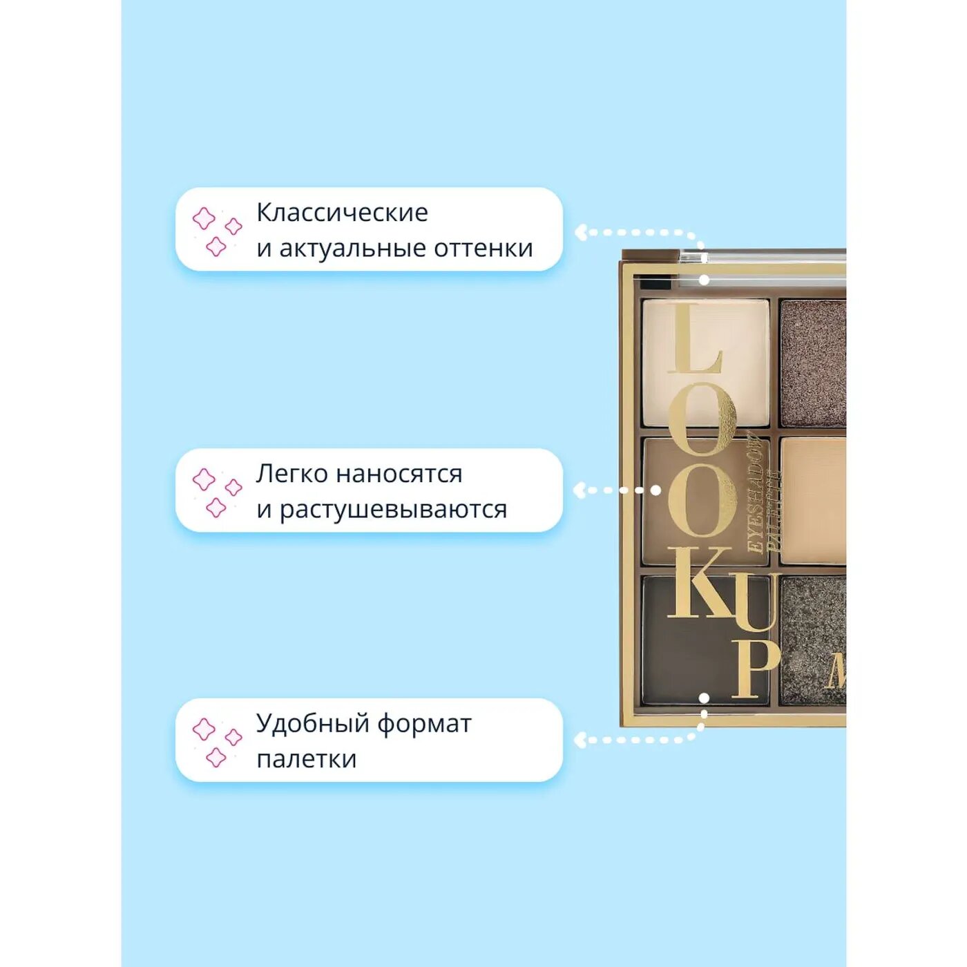 СохранитьПалетка теней для век EVELINE LOOK UP тон take me on интересное: