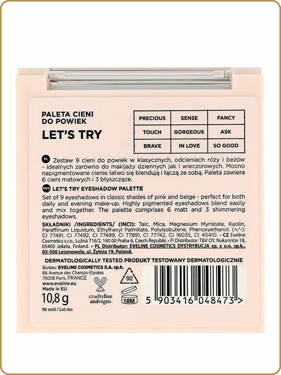 Купить Палетка теней для век Eveline Cosmetics Look Up Let's try!, 9 тонов