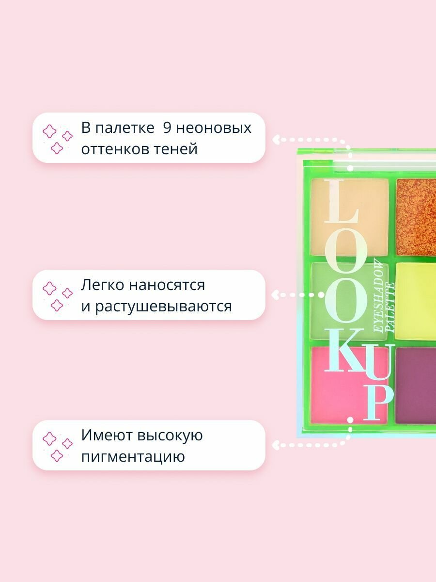 Тени для век неоновые палетка матовые шиммер LOOK UP NEON LIME 10,8г