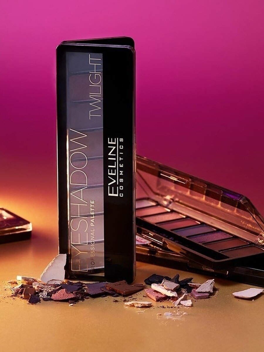 Тени для век EVELINE EYESHADOW PROFESSIONAL PALETTE палетка №02-TWILIGHT (8 тонов), 9,6 гр