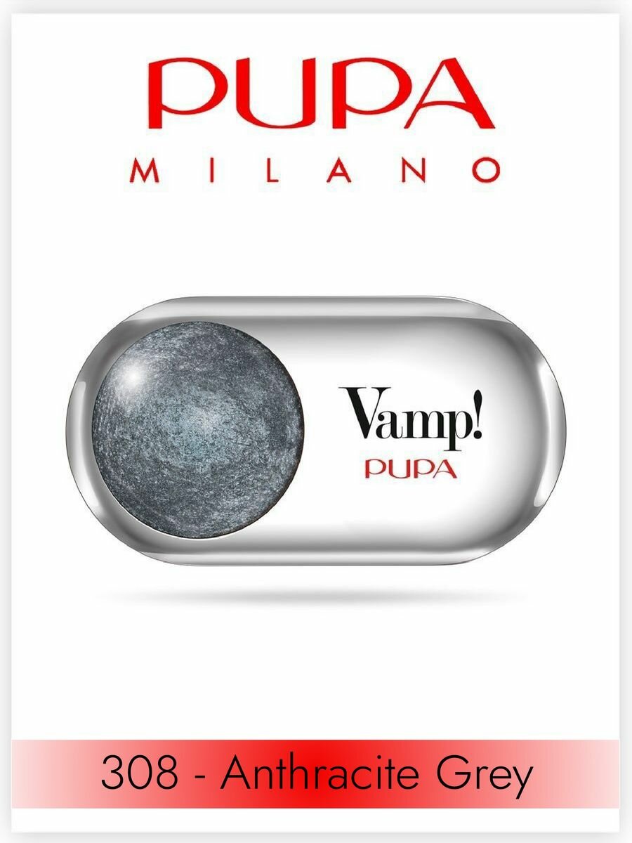 PUPA Тени для век запеченные сияющие VAMP! WET&DRY №308 антрацитово-серый