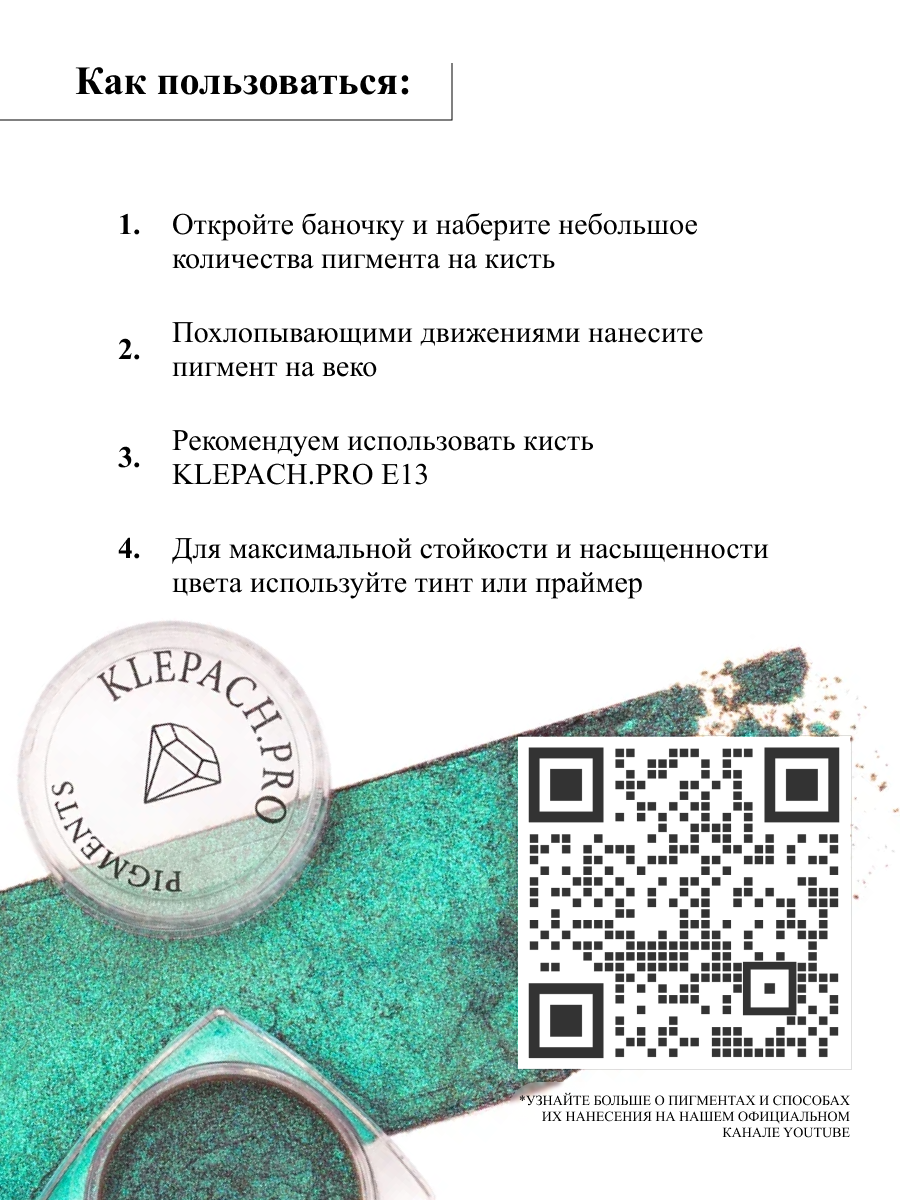 | Способ применения | в макияже лица, глаз и губ, а также в бодиарте. Наносить поверх готового макияжа, на стойкие кремовые тени, базу для век или гелевую подводку Instructions for use: in facial, eyes and lips makeup, also bodyart. Can be applied on finished makeup, durable cream eyeshadows, makeup base or gel eyeliner |