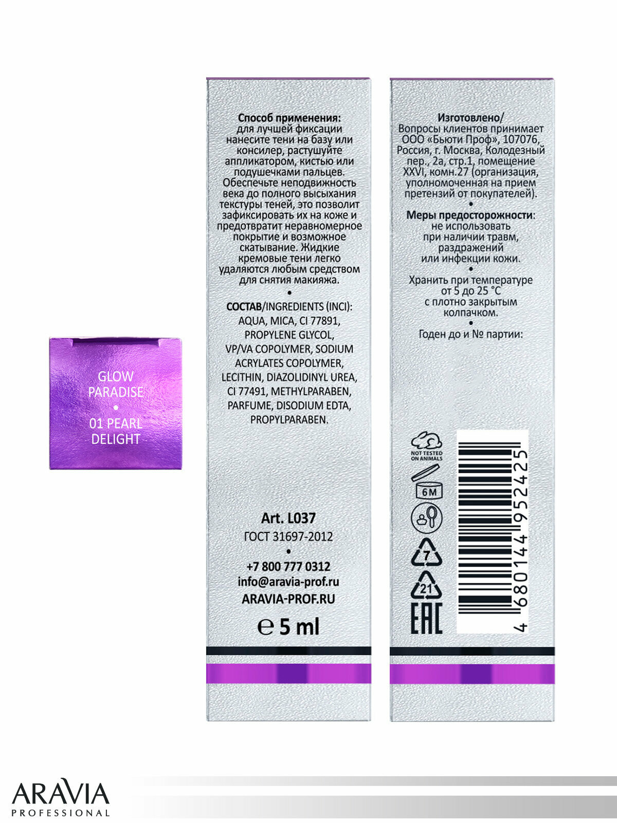 ARAVIA Тени для век жидкие сияющие Glow Paradise, оттенок жемчужный 01 pearl delight, 5мл