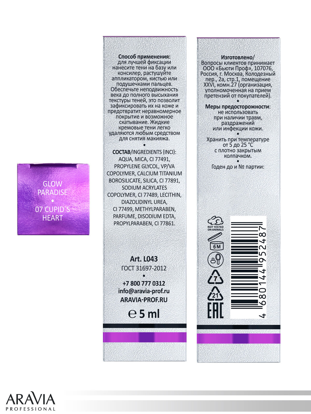 Купить Тени жидкие сияющие для век, 07 Cupid`s Heart / ARAVIA Professional Glow Paradise 5 мл