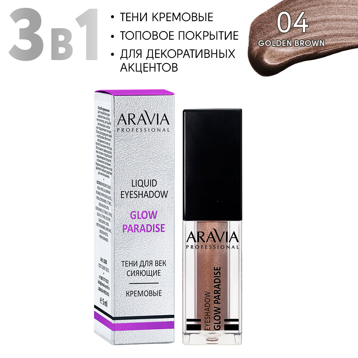 Купить ARAVIA Тени для век жидкие сияющие Glow Paradise, оттенок золотисто-коричневый 04 golden brown, 5мл
